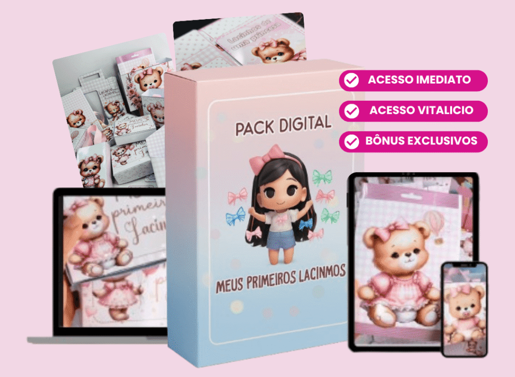 Com o Pack Digital Meus Primeiros Lacinhos, suas embalagens passam de simples a encantadoras, transformando cada envio em uma experiência de unboxing digna de loja de shopping.